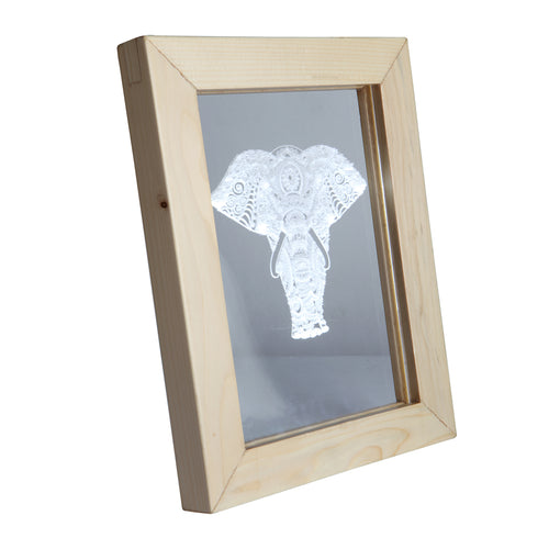 Wood Led Frame With Acrylic Carved Elephant Design | Night Lamps