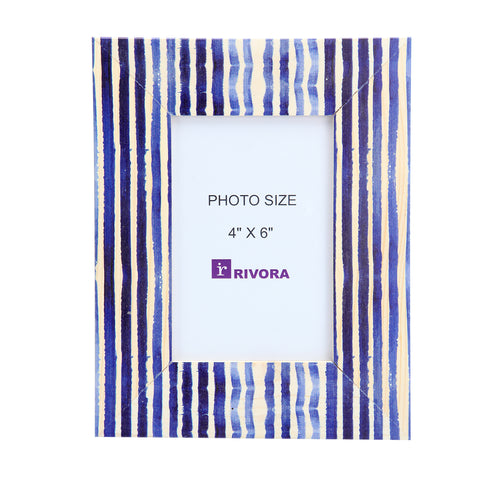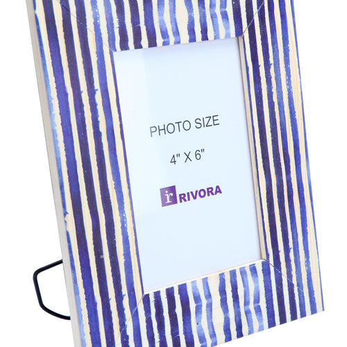 It is decorated with unique blue coloured shibori stripes art prints. Shibori is a Japanese manual tie-dyeing distinctive technique that is one of the oldest indigo dye techniques of Japan. Finest quality frame handcrafted by skilled craftsmen for an antique look. Fitted with a beautiful luxurious wood photo frame with black non-woven back cover and metal stand. Beautiful luxurious & elegant, lovely décor collectible enhances style and luxury of living. Store timeless memories captured of your loved ones. This is a classy gift for all occasions like wedding, birthday, anniversary, and housewarming. This is a handmade product of natural wood, due to natural origin there might be shade variation and colour variation shown in the picture. This is a handmade wood product exclusively crafted from premium quality wood.