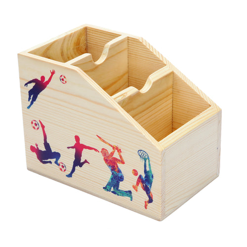 Wood Remote Holder With Sports Print | Home / Office Organisers ?