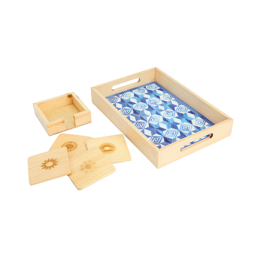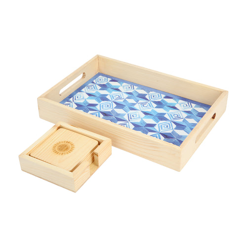 Wood serving tray shibori star art print lamination is a handmade wood product exclusively crafted of high quality wood with shibori star art print lamination. This wooden tray consists of a high quality wood outer frame, with good quality veneer. This tableware is handmade wood product exclusively crafted from premium quality wood. This product is 100% made in India and handmade by skilled artisans. This tray gives a rich and exquisite feel to your kitchen & home.