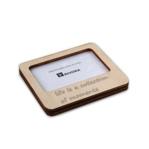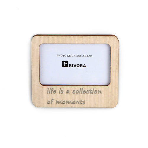 Wood veneer photo frame fridge magnet has a unique design and is crafted in wood natural veneer. It has a subtle “life is collection of moments” text printed on a wooden frame giving it an elegance and stunning look. You only have to slide in your favourite picture. It has front clear acrylic to protect your memorable picture and is backed with a rubberised magnet. Wood veneer photo frame fridge magnet is an exclusive décor and collectibles gift item for various occasions like birthday, anniversary, housewarming, weddings. Add a lot of beauty to the house with this wonderful masterpiece. Please note print colour may vary subject to availability in stock.