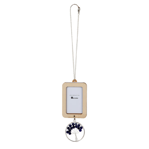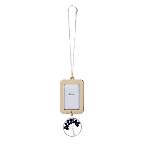 It consists of a premium quality laser cut wooden photo frame with a metal tree of life in blue agate stone. It holds any photo or picture of dimension size 4 cm x 7.3 cm. Car hanging photo frame, metal tree of life in blue agate stone is a very elegant and stunningly attractive gift option. It is a unique product for cars that adds to aesthetic appeal. This is a car hanging decor accessory ornament for car dashboards. It beautifies the car interior and gives a cool, fancy, and amazingly artistic expression. Car hanging photo frame, metal tree of life in blue agate stone is surely one of the innovative gift options for various occasions like birthday, anniversary, housewarming, weddings.Â
